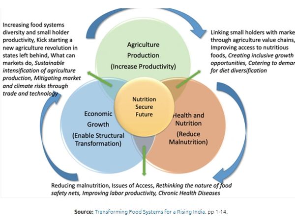 Sustainable food systems for the future will need to ensure that there is a multi-sectoral development on three fronts - food, health and livelihoods. Hence our focus on milk and fresh medicinal herbs adoption of the latest farm technologies will help to achieve on these 3 fronts. Understanding and identifying the feasible frontier technologies in the food value chain for a given geo-spatial, political, socio-economic and cultural domain is the key factor to ensure sustainable food systems for the future. (Figure extracted from "Transforming food systems for a Rising India", Pingali et al. 2019, pp 1-14, link.springer)
